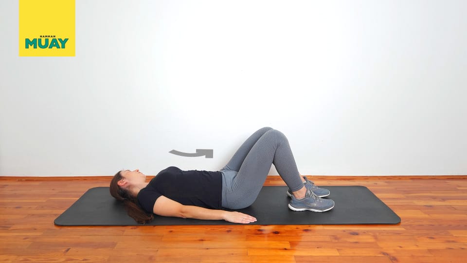 Allongez-vous sur le dos, les genoux pliés et les pieds à plat.